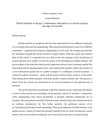 Rapidly evolving regenerative medicine and 3D printing technologies are driving the trend of analyzing living materials: synthetic meat is grown from animal cells, which could potentially replace today’s cattle meat and reduce the need for livestock farming and the environmental pollution it creates; simple human organs are grown, such as ears or skin, which soon could be used for the treatment of injuries or even for the reconstruction of functioning human organs. Internationally, living materials design is increasingly improving and gaining popularity as a new field of alternative art and design. However, in my current practice, I do not seek to examine the field of living materials design as a separate topic, because it is a kind of new and very broad topic covering issues of human biological conception and design ethics. I invite wild nature and microorganisms to join as creative assistants and co-authors who would accelerate the biodegradation of hybrid materials objects and represent the natural processes of material transformation.
