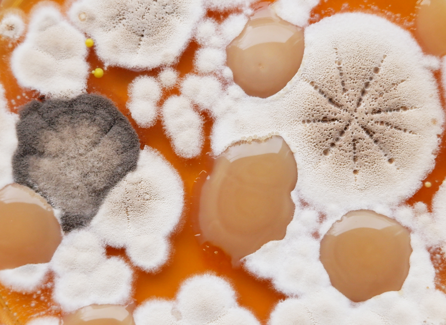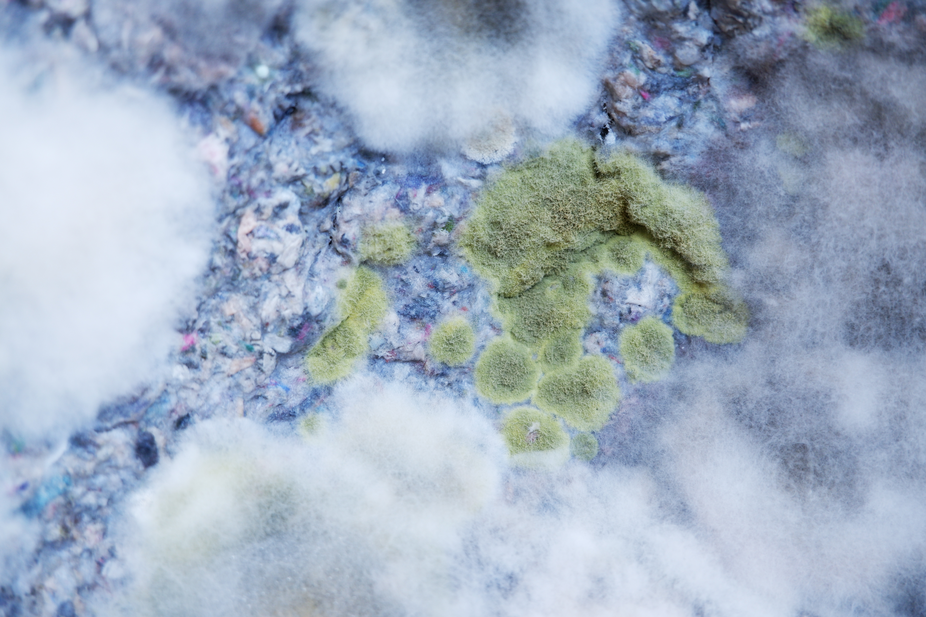 growing blue mold (Penicillium italicum) on sticky rice and recycled paper mass