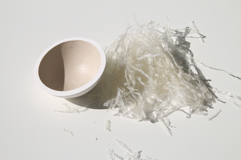 After a lot of experiments of mixing natural ingredi- ents, I created a new biodegradable material based on a seaweed. This new material perfectly holds its shape, is waterproof, and protects the product against possible damage. made of only two natural ingredients, this material is wholly organic and compostable.