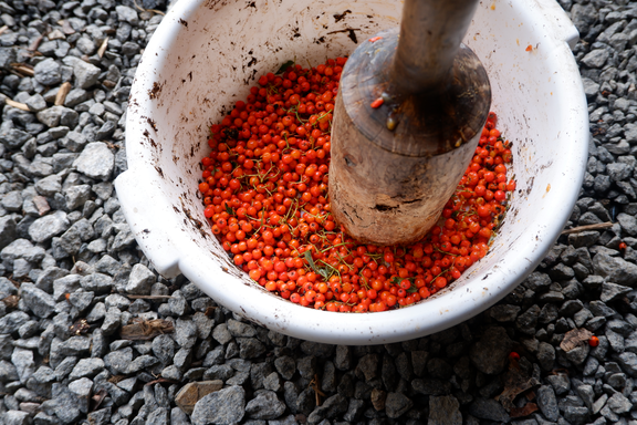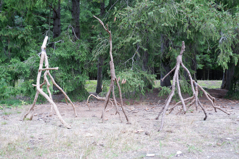 I shaped few abstract objects by hand while trying out the different material combinations: it contains fallen tree branches, pine sap and jute fiber, horse manure, local rowanberries and bird seeds.