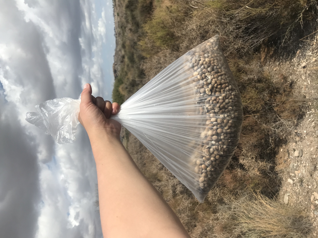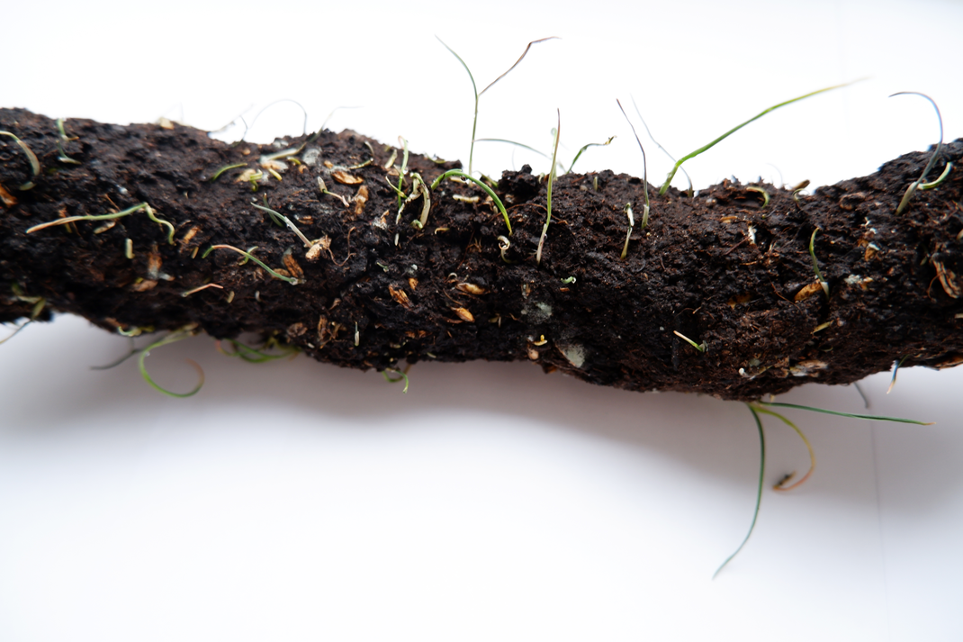 After weeks of collecting and processing the materials, I created a hay-like biocomposite material made of crushed rabbit feces and bind together using a starch-based bioplastic.