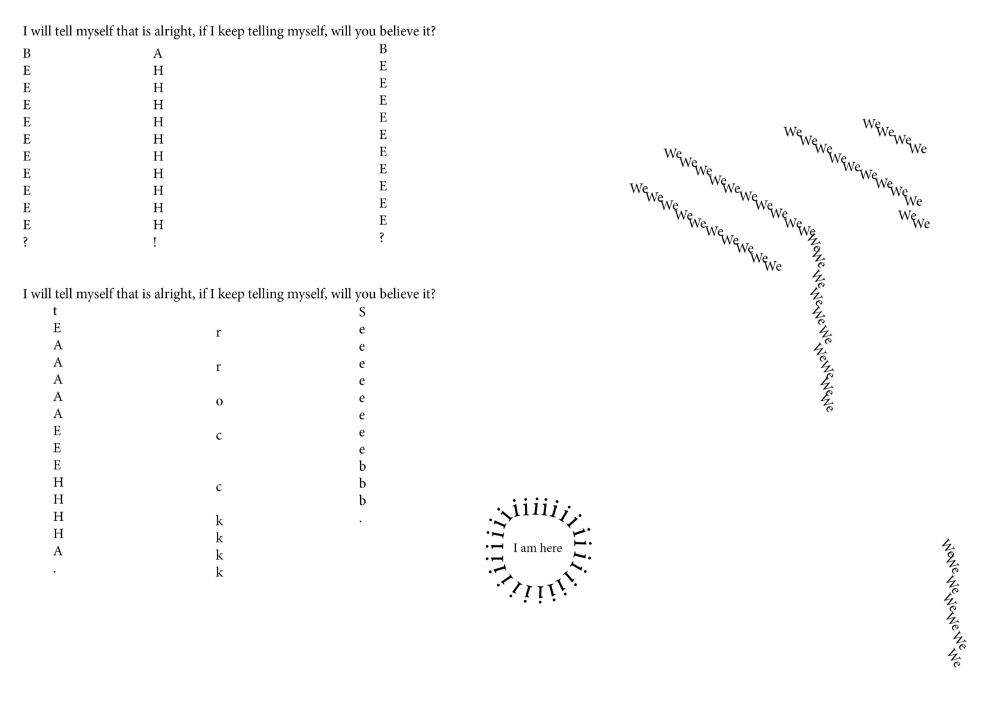 Everything on this page mainly explores me reflecting on how I perceive things. How do I deal with people in the space? How does the place deal with me being in there? Why do I struggle with breaking loose with the idea that everything needs to have meaning? And so on..