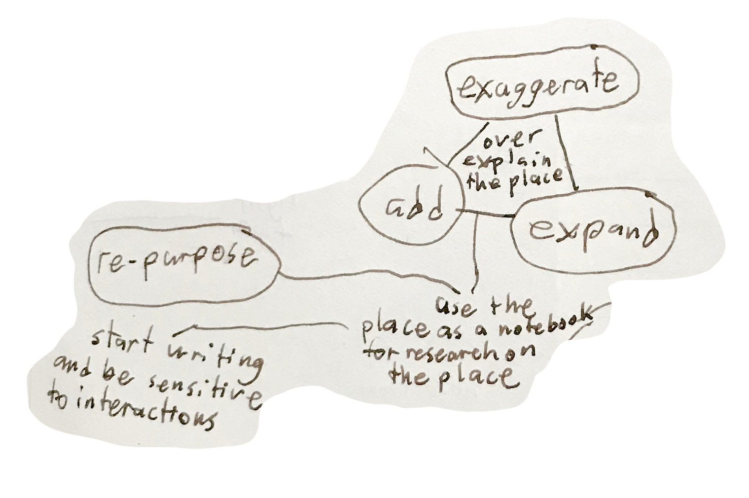 my idea came from this exercise of subverting boredom on the train, loosely inspired by Georges Perec's prompt to exhaust a place by analyzing and explaining every observation in the place.