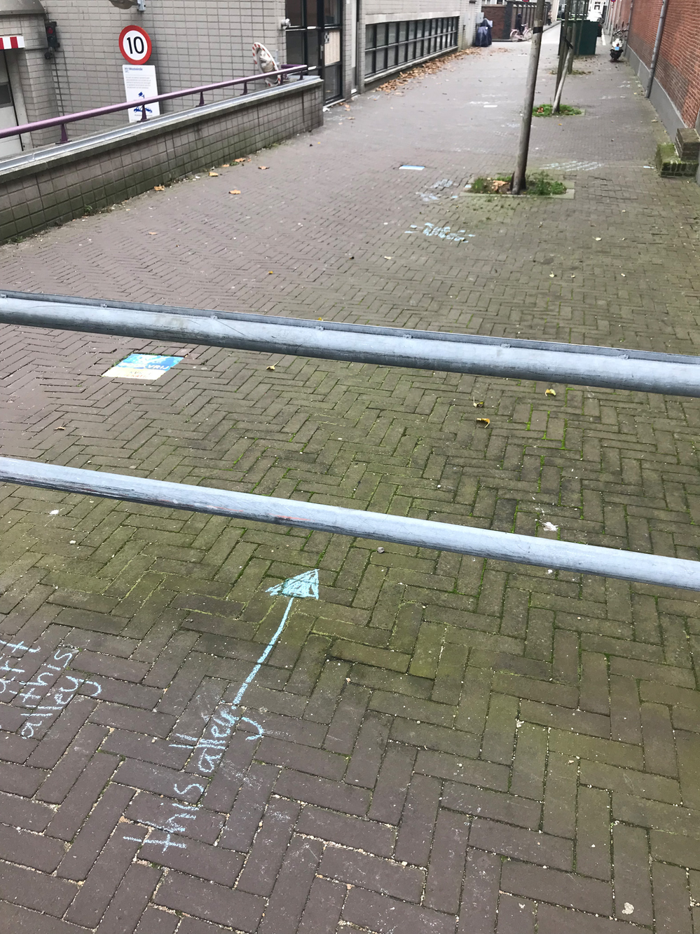 The person on the motorcycle came through the vehicle block, quite smoothly, but made it through just as the car with DHL people came to a halt. From where I stood, I perceived the car as way too close to the vehicle block for the motorcycle to pass, and for a brief moment I anticipated an interaction between the two parts because of this clash of interest. But the motorcycle passed the car with ease, and blasted off through the alley, also, in my humble opinion, a bit too heavy on the throttle. It is after all supposed to be a motor-vehicle-free alley.