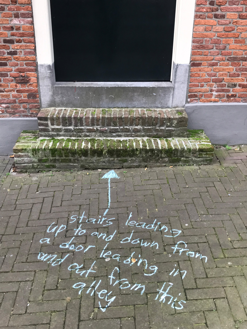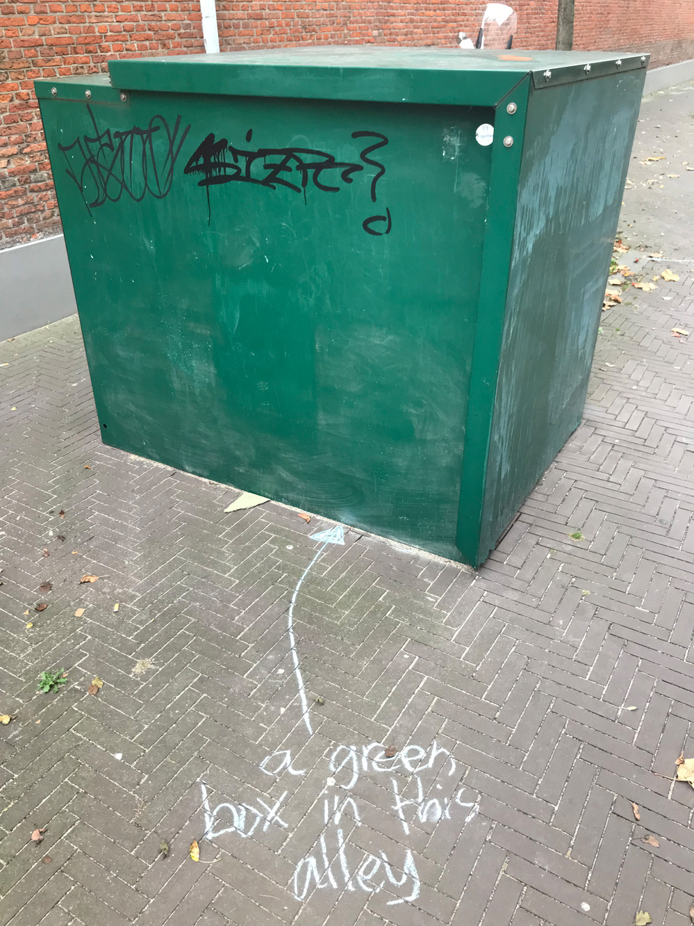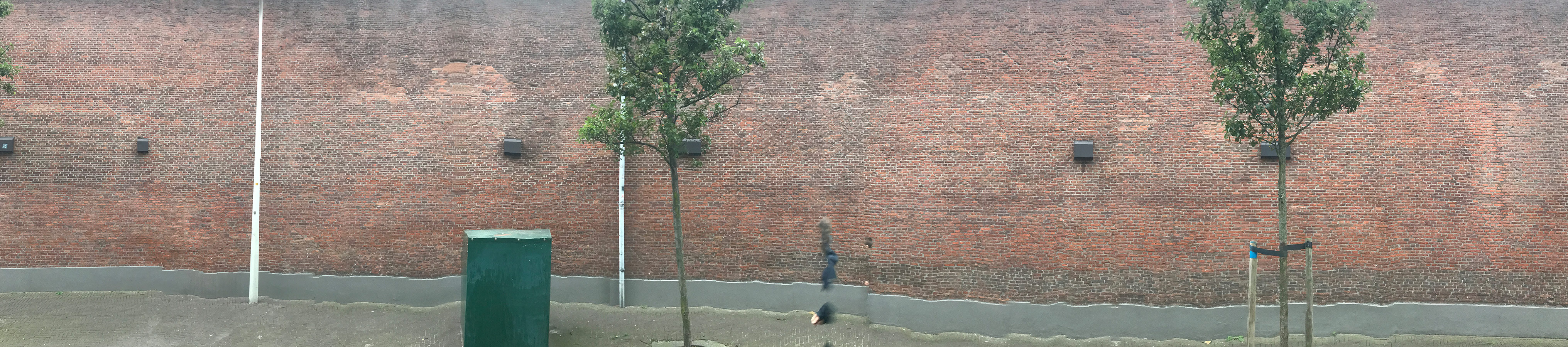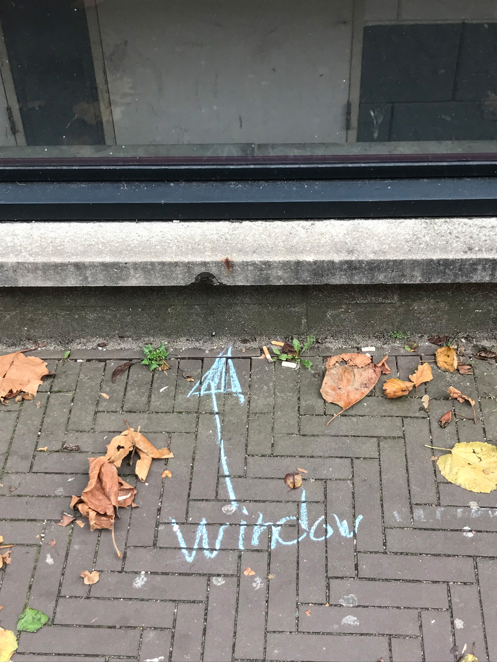 Since it’s autumn some dead leaves laid on the brick floor of the alley. They were mostly laying in the angle in between the alley brick floor and the wall of my building, but one was laying just in the middle of it. On closer inspection, I noted that over 90% of those leaves were from a maple tree, which does not exist in the alley. I later found that there are four maple trees growing outside the entrance of the hospital entrance in warmoezierstraat, and my guess is that the leaves in the alley come from there. The pear trees in the alley are still green, although they have lost their green summertime, photosynthetic prime time glow.