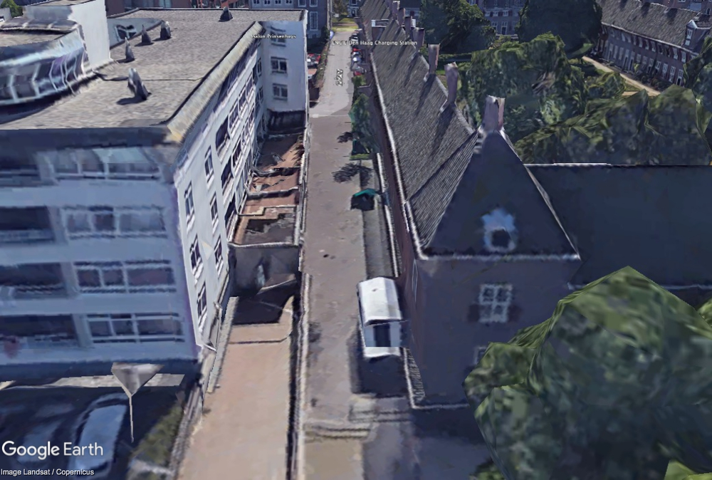 Two people from DHL came in a van that said "sneltransport". They drove through the alley in a speed that I deemed unnecessarily when witnessing it, and stopped right in front the vehicle block. Then they exited the vehicle and disappeared around the corner into warmoezierstraat.