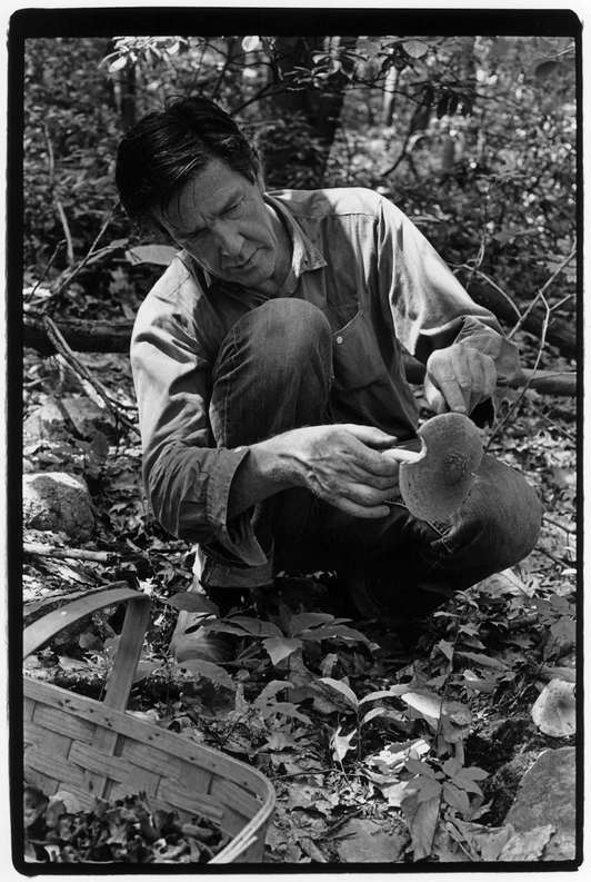 In the summer of 1954, Cage moved to a cooperative community in Stony Point, New York, where he began to traverse the woods surrounding his new home. The area was flush with mushrooms and located near a well-known mycologist named Guy Nearing. Nearing became Cage’s ‘mushroom guru’ as he honed an interest in mycology. In 1956 Cage began to teach an experimental composition class at the New School for Social Research. After teaching this course for several years, Cage made a request to offer a class on mushroom identification, framed as a series of five mushroom hunting field trips with Nearing as co-instructor: