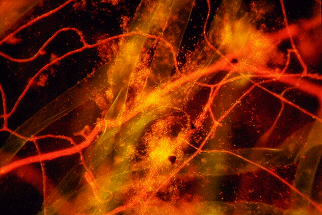 When the largest and oldest known living organism surfaces, it manifests as a delicate mushroom no bigger than the palm of a hand. Just below the surface, the mushroom is connected to a vast network of threadlike roots that extend nearly 2,400 acres throughout the Malheur National Forest in eastern Oregon. Although the fruiting body of the fungus appears as a tiny mushroom, the entire network is actually a singular entity, an unseen web that is slowly regenerating the forest by decomposing it over time.