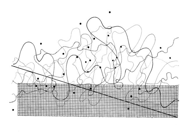 Deleuze and Guattari’s (1987) idea of ‘rhizomatic becoming’ offers a means to understand this theoretically. In A Thousand Plateaus, they describe one’s interaction and experience with the world as a complex assemblage of non-linear passages that collapse and fold onto each other, never settling, never making permanence. As new nodes are created, others close and form in an ongoing process of emergence and possibility. This ‘rhizomatic growth’ is a conceptual framework as much as a biological function – something that is nomadic, unpredictable, and occurring through both mutualistic and parasitic relationships over time.