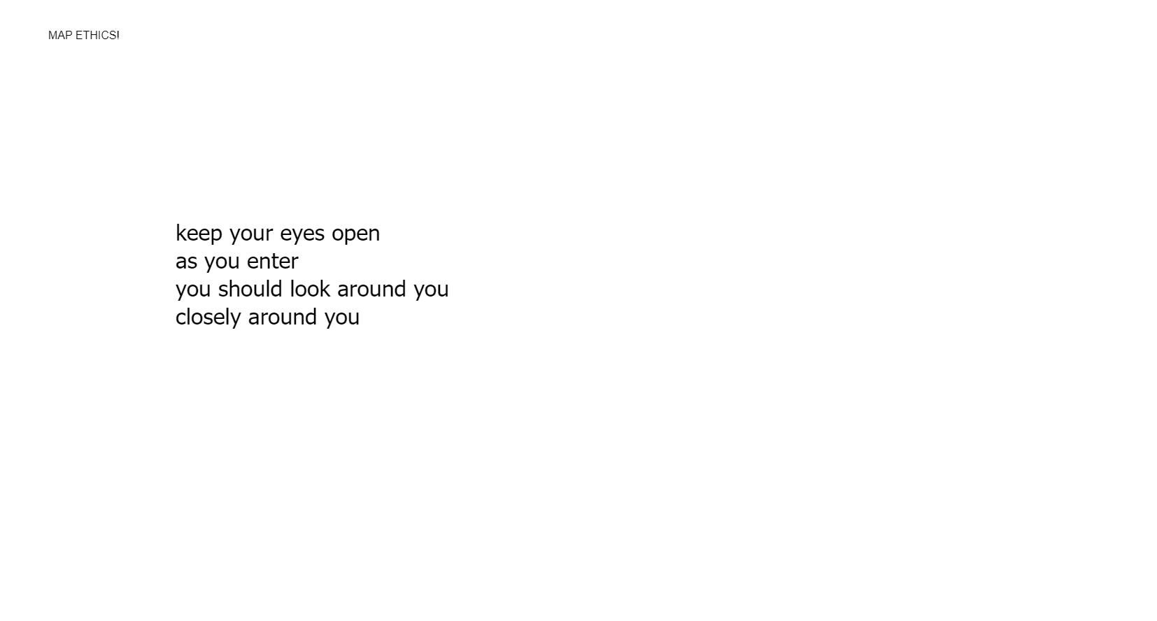 The occupation with these questions of ethics can take an array of directions and include many different fields of inquiry to explore and, surely at times, problems to face and address. As an example, who you choose to include and who you exclude in your artistic research can foster ethical questions. Sometimes leaving an ethical concern out of a project can be more problematic than addressing it and confronting the politics/sentiments/materialities it may evoke. In this sense the non-present can speak as loud, in its negative space of omittedness, as that which is directly presented. Thus, sometimes it is can be an (un)ethical act to not confront an ethical concern, be it a marginalised position, an uncontested state of consensus or a stating of the obvious.
