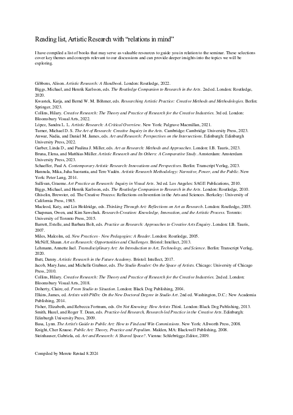Seminar with preparatory assignments, lectures, presentations in varied formats, plenary discussions and discussions in groups. Group work sessions led by the research fellows themselves. Research fellows must have read the literature on the mandatory reading list and prepared a text and presentation in a relevant format. During the seminar, research fellows must give a presentation and play an active part in the discussion of other research fellows’ projects. A total workload of 75–90 hours, corresponding to 3 credits.