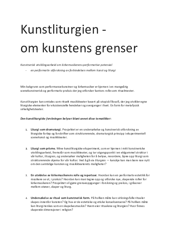 Kunstliturgien is an Artistic PhD project by Liv Kristin Holmberg (Norwegian academy of Music, NMH).