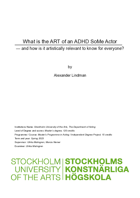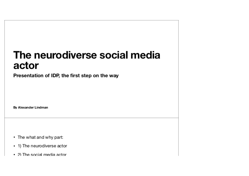 The work in progress here is 150 pages long but is more about art and ART-definitions and is not fully fact checked - but it contains alot of my thoughts on ART and my definitions in relation to Social Media acting.