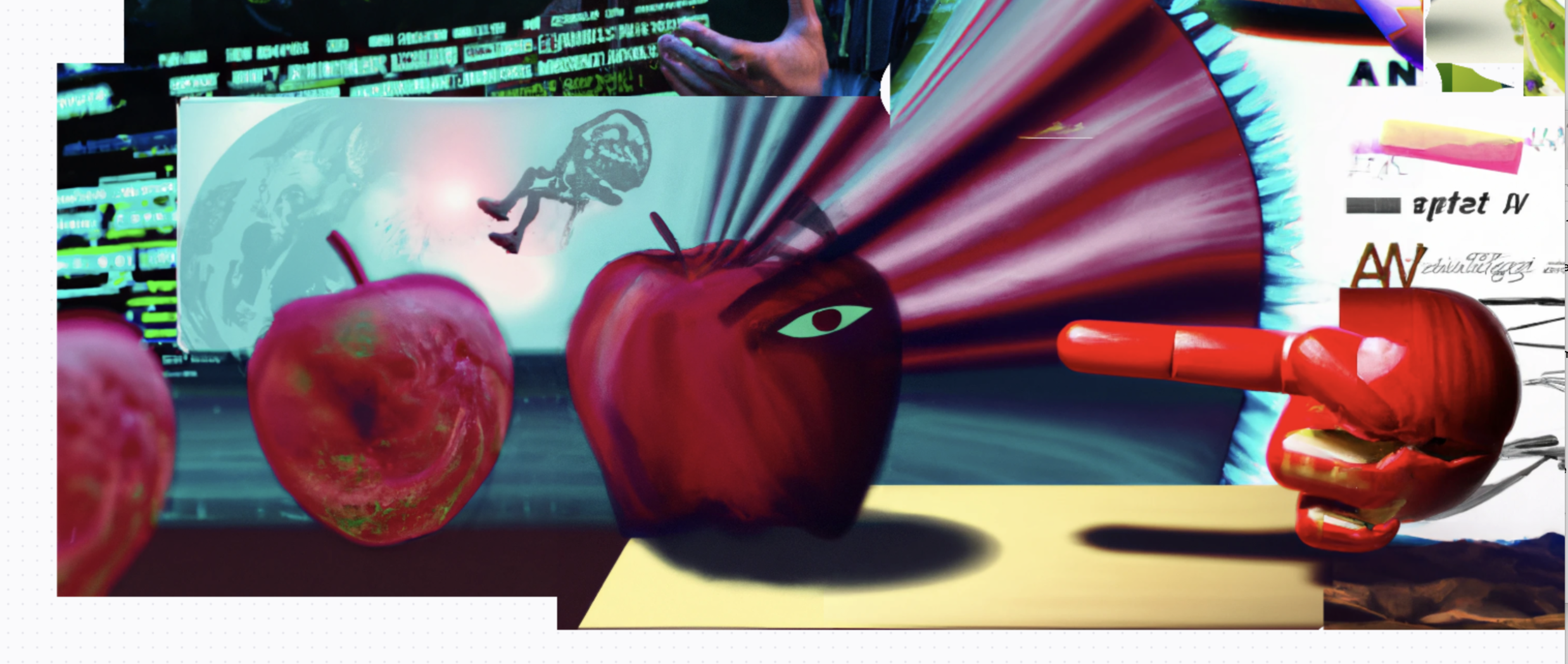 Kaiber AI collectively dreams with me about ART as an apple as a metaphor for dreaming at the edge of what is possible about art