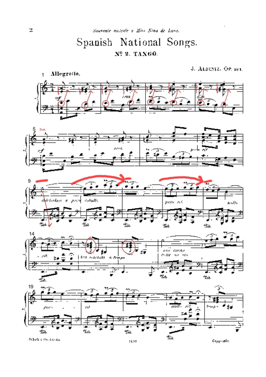 I was unable to find a historical recording of this piece from the time of Viñes. However, this recording of Isaac Albéniz himself improvising in 1903 provides us with a glimpse of his energetic and “forward-moving” way of playing.[4] In my personal view, this strong sense of a Spanish-like rhythmical character and rhetorical rubato qualities is quite similar to what we also hear in Ricardo Viñes’s recording. Although it may never have been the intent of Viñes to imitate the playing of the composer, let us not forget that they knew each other.