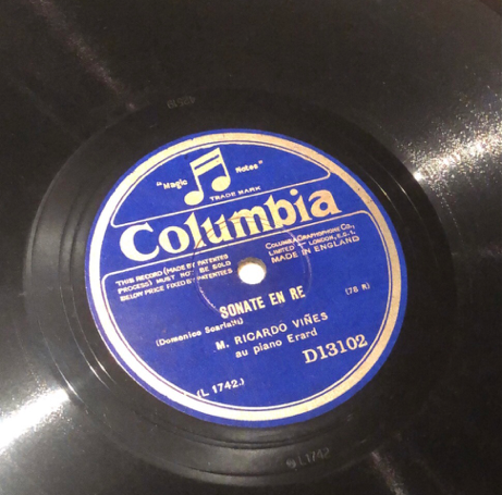 Owning a C. Bechstein from 1879 myself, I am acquainted with historical Bechstein pianos. The one at Ringve Museum is, in the context of how Viñes recorded, probably smaller in size and with both mechanical as well as sound producing limitations due to its age (it is not fully restored). Keeping the instrument in tune was also challenging. Although the piano is kept in functioning condition for the use of performing guides at the museum, it is never used for long and virtuosic recording sessions such as I intended to use it. However, the acoustics of the piano were surprisingly good considering its condition, and it certainly added a feeling of authenticity with its warm and slightly mellow sound. We can only speculate on the brand and the condition of the piano used by Viñes in 1929 and the 1930s, but a 78 rpm recording from the 1930s of Viñes playing the Scarlatti Sonata, that I acquired from eBay, clearly states “Erard piano” on its label: