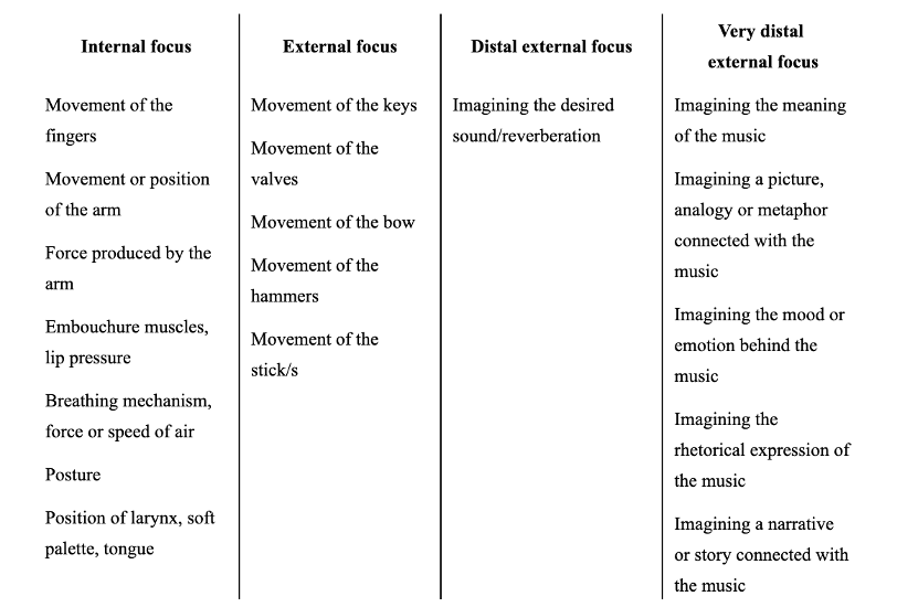 Internal and External Focus for Musicians