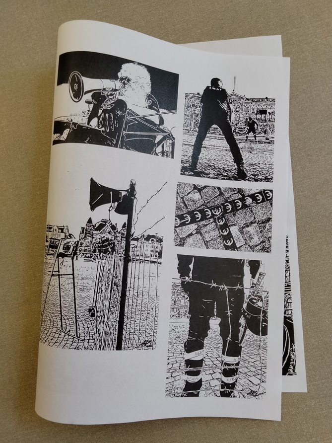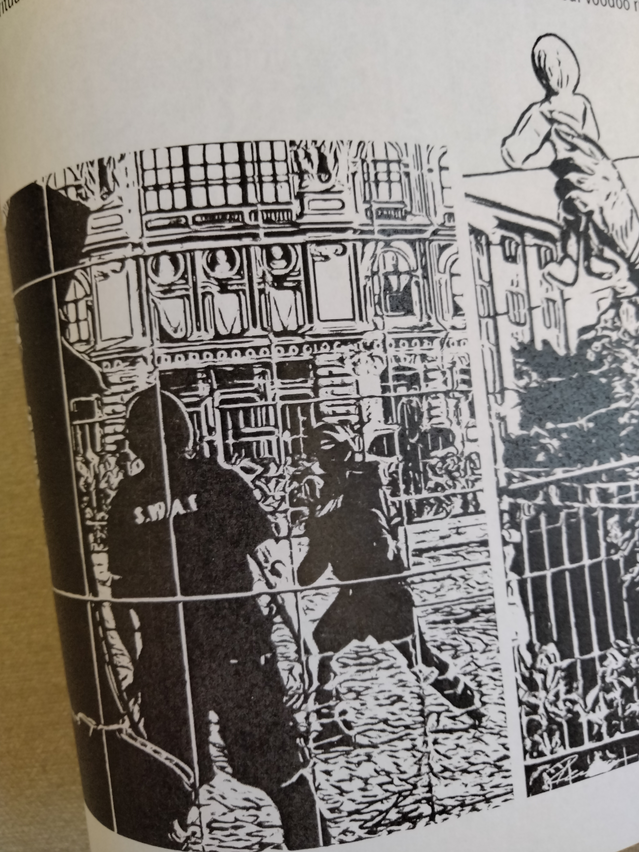 Back to my publishing tactic. I believe the graphic novel dimension adds a new polysemic element in my attempt to erase the separation between life and art into an oscillatory multiplicity in becoming. Apparently this move looks like an escape from real life towards the artifice of art but actually it intensifies the dystopia of my “critical playgrounds”; it adds intensity and chiaroscuro. For me, showing a dystopia is the only weapon against a realized capitalist utopia. Furthermore, this derealization in the graphic novel allows me to actually show a virtuality of action and thinking that is separated from commodified life which, having become bio-political, can no longer be considered life but "bare life" in a "concentration camp”, as Agamben would put it. Furthermore, Capitalist commodification and their apparatuses, that are everywhere, produces zombie spaces and zombie subjectivities of which the myriads of movies and series about zombies could be a symptom. And this capitalist situation of full commodification already brings with it an immanent “graphic novel” atmosphere. Today “graphic novel” is a form of hyperrealism because we live in a reality where the imaginary has collapsed into an Apocalyptic real, the ephemeral into the tragic of the End of the World, the utopian in the dystopian. These themes have been intensely explored by Baudrillard (Baudrillard, 1981), Eco (Eco, 1990), Jameson (Jameson, 1991) , Fisher (Fisher, 2009) and many other thinkers before the new millennium but they still affect our times with even more radical intensity.