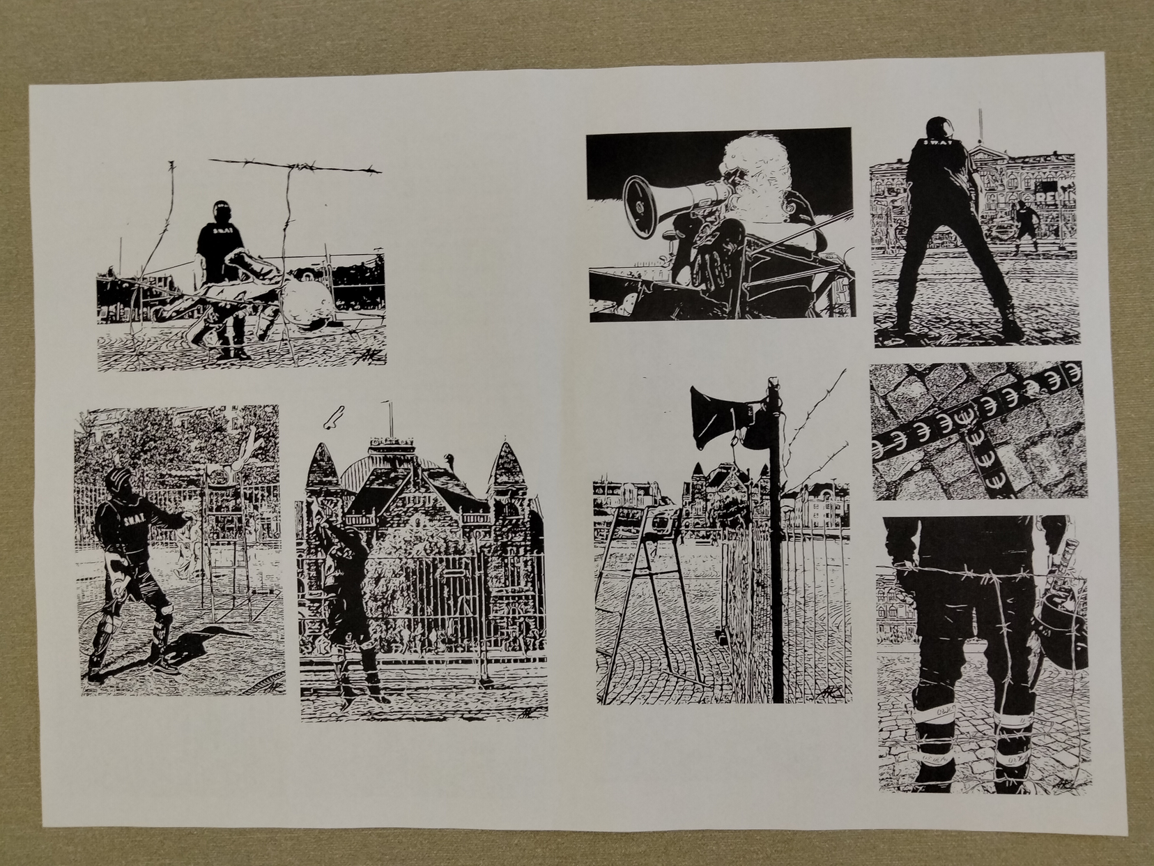 The next step for an alternative publication is to transform the images of my interventions, films and photos, into a “graphic novel” style. This opens up the possibility of transforming my interventions into “graphic novel” stories to be distributed in a parasitic and clandestine way in front of the openings of galleries and museums and also in front of universities and academies (they do not let me set foot inside.) Another possibility that intrigues me is distributing the stories in the subway in honour of an underground press attitude. Furthermore, in this way, I will re-double my “graphic novel” style through a public performance of distribution. In fact, the Anartist, who is the character I invented - and who wears a black balaclava - is a sort of demonic avatar who attracts me into the event of radical urban interventions. The Anartist creates critical play-grounds that disturb the organization of capitalist space-time implemented in the reproduction of habits, perceptions, gestures, actions, feelings, subjectivities etc. The Anartist engenders an untimely and unspacely event which from a starting critique opens the urban situation to an “infinite contestation”. The Anartist, who is also an artistic remodulation of a Black Bloc aesthetic and subjectivity, is already a performative “graphic novel character". This does not mean that a "character" does not have authentic political potential. It is not a parody but an intensification of a political mask; it is a bifurcation that regenerates the subversive force of the original “simulacrum” (there are no original). Furthermore, “fiction", as both Deleuze and Rancière would agree, is charged with subversive potential (Rancière, 2011). First of all it allows a "de-actualization" of the subjectivity that is free from social conditioning and can reinvent itself. In other words fiction shatters the perceptible orders. The inclusion of fiction in my interventions creates an indefinite ambiguity between art, literature, theater, politics, graphic novel, which, as Sylvain Lazarus would put it, gives life to a “purely subjective” and “intimate” politics that has nothing to do with an “exterior object” (Lazarus, 2015). My quasi-fictional practice creates a “distance from the State’s politics” and it has nothing as its “object”…In other words my praxis is an oscillatory and indefinitely multi-variation politics on an edge of escape that is not subjugated to the constant of the signifier of the State; Deleuze would echo Lazarus in this way. Furthermore, such a strategy increases the “dissensus” and “displacement” of the pre-defined “partition of the sensorium” as Rancière would add (Rancière, 2002). However, if we look beyond theory of politics and theory of art, which I have talked about at length in my dissertation and some other articles, it is desire and contingency that move any practice. As everybody knows theory and action, art and politics, and writing and experience cannot clearly overlap and this is also good news; otherwise nothing new that exceeds theory or writing could be created. There is something in action that escapes signification, it is an excessive “being there” in the midst of an Event. Everything cannot be explained…Knowledge of doing and making is tacit (Johannessen, 1990). It subtracts itself to the power of language and the reproduction of epistemic “Power-Knowledge” (Foucault, 1980).