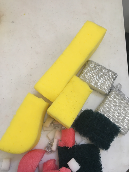 It became apparent quickly that people visiting the gallery were unprepared for someone to be in a semi-empty space, ripping up sponges or scrunching plastics without a clear path marked for manoeuvring through the space. Rather than letting the encounter become performative where I knew I was being watched and they knew I knew, I discussed the project with members of the public and invited them into the space to do whatever they would like while I continued working. It wasn’t easy and I felt on more than one occasion people were made more self-conscious at interacting with the content because I was present. If I was to try and discern if the project succeeded in what I had set out to do, then it could be said that the “best” version of the residency project becoming a public encounter was in the evenings when the space hosted the overflow crowd from theatre and comedy events during an arts festival. A crowd of people attending the venue for other reasons, making their way towards the bar or their seats would pick up things off desks or shelves, look at them quizzically trying to understand their purpose in being there or just generally being confused by the mess. As an observer in the crowd (I had free tickets to all shows during this period) these ordinary encounters seemed more genuine in curiosity than those during the day. I am still unpacking what this means for intentionally attempting to create an environment where a public can engage with processes of creative practice.