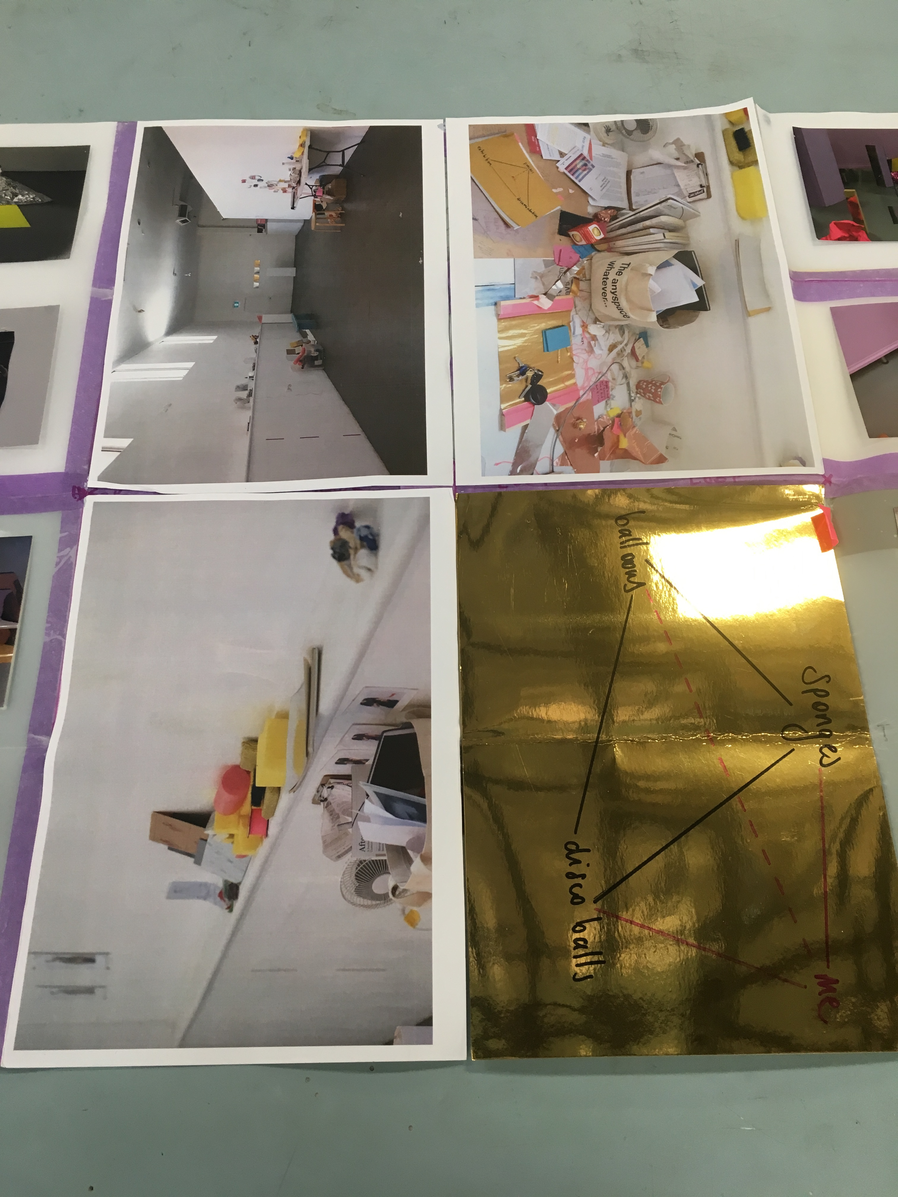Actions, like squeezing and tearing sponges or standing on disco balls, are driven by asking ‘what happens if…?’ and ‘what might I learn if…?’ However, outside the event in which such actions are occurring, these moments become at risk of being lost. Here, the residency has the potential to hold these actions animate and continuous through cycles of thinking, making, showing, thinking, making and so on—and unlike as can happen in gallery exhibitions, doesn’t become a performative act of an ‘artist at work’. While these types of questions are not wholly unusual in contemporary artistic practices, they are often undertaken in the act of working towards the creation of a finished artwork at the perceived end of the process. The notion of the residency as a dynamic space that can support the actions of thinking, making, and showing art (as they come together and move apart again) provide an alternative to the experience of encountering resolved art presented for the public and encourages ongoing questioning and curiosity through its format.