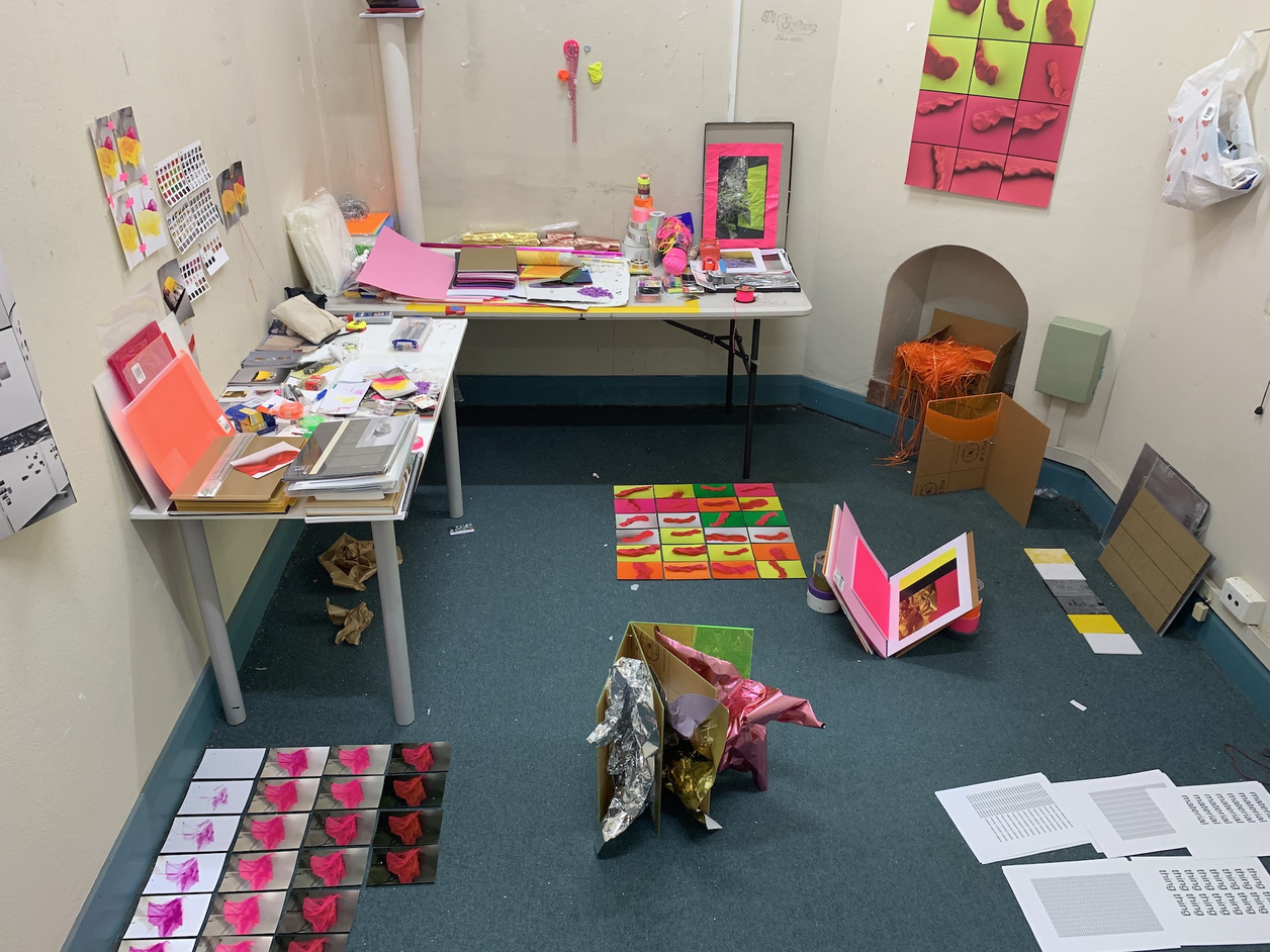 While for some the studio may hold the potential to be a place where productivity flourishes, it is often a removed and mostly private space where completed artwork emigrates out of, sometimes returns to, yet always remains somewhat disconnected from. During my research a studio became a signifier of monotony. The familiarity that comes from spending large amounts of time in the same space locked me in to material engagements that were unchanging. Seeing the same materials, the same backdrop for creative practice made it increasingly difficult to approach anything with curiosity or see a path to thinking or doing otherwise. A residency, on the other hand, came to symbolise potential and yet to be discovered qualities about the subject matter—a fresh space, an unknown space, one that would require negotiation and consideration. A residency could embody the studio at its most vibrant but without the habitual baggage.