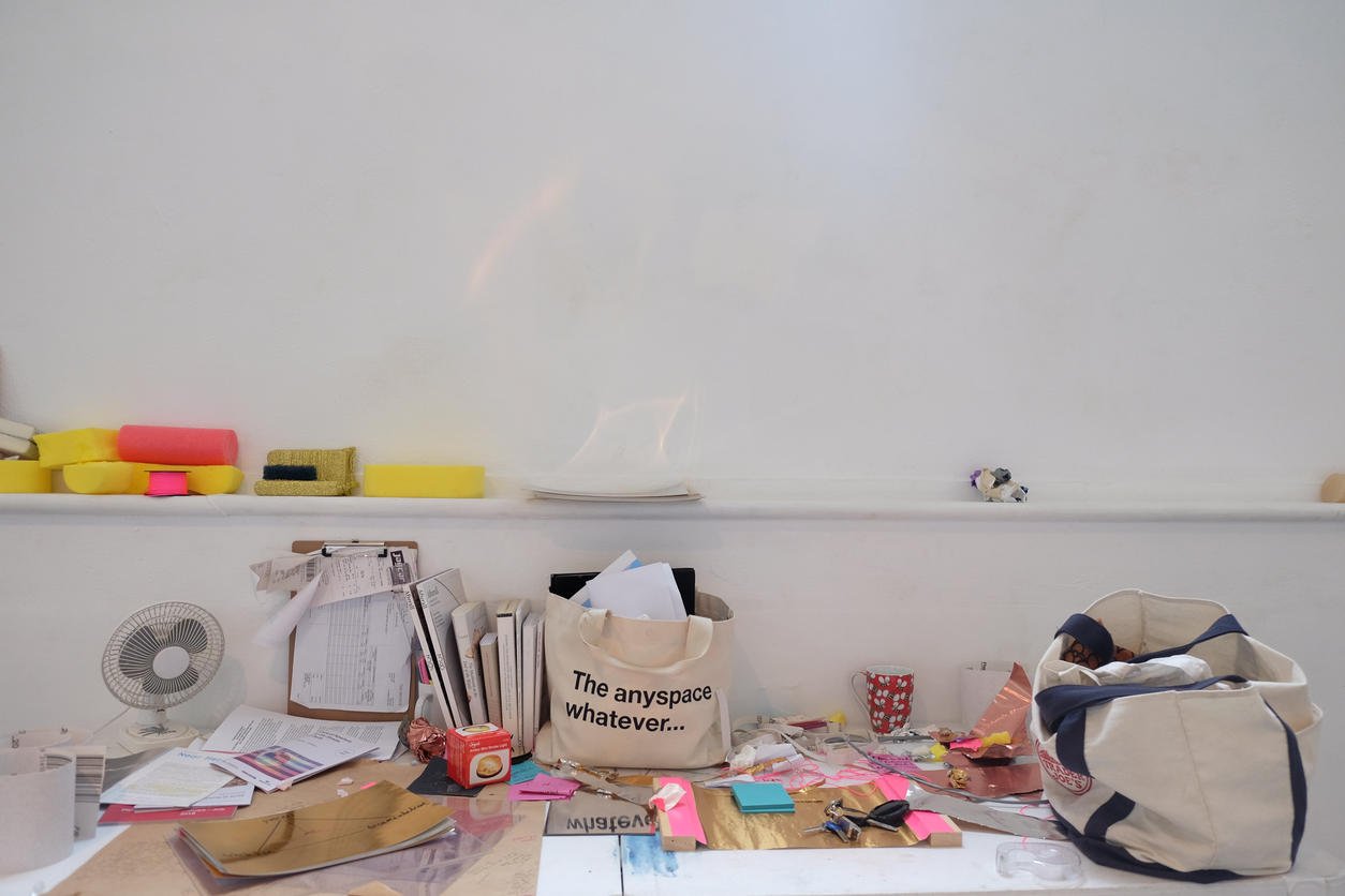 The artists’ studio is usually a specifically designated space for art production and creation. In some instances, it can reflect habits of working, go-to materials, and thought processes yet, it can also at times be a dynamic and changing space. Brian O-Doherty says that the studio “exist[s] under the sign of process, which in turn defines the nature of studio time, very different from the even, white, present tense of the gallery. Studio time is defined by this mobile cluster of tenses, quotas of past embodied in completed works, some abandoned, others waiting for resurrection, at least one in process occupying a nervous present” (2007 18). I find it particularly interesting that here in O’Doherty’s discussion of the studio there is no notion of a future—a progression forward of practice or ideas—but rather a definite past of dead and dying works at best barely holding on to the present. Preceding this, Daniel Buren in 1979 outlined the studio as a space where “we generally find finished work, work in progress, abandoned work, sketches—a collection of visible evidence viewed simultaneously that allows an understanding of process” (56). Although he sees this studio content as constituting a visible form of process it is not always this place where creation is constantly occurring. It can become stagnant, sterile, storage; a place where dust gathers, and admin is conducted. A place where projects began with momentum but were left for new ideas.