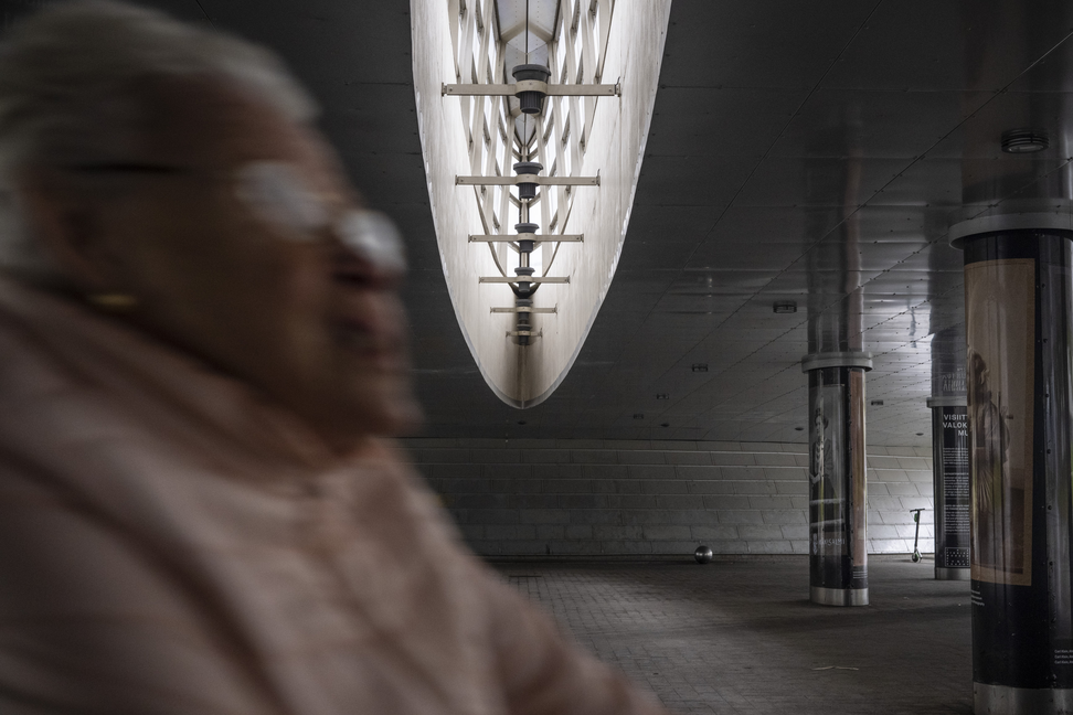 Satunnaisissa kohtaamisissa ohikulkijoiden kanssa ihmisten kuvaaminen läheltä tuntui tungettelevalta. Tunsin itseni muukalaiseksi heidän katseessaan ja ajattelin, että valokuvaamisen motiivi voisi tuntua heistä epäilyttävältä. Kaupungin järjestys oli pandemiassa muuttunut, eikä paikoilla saati niiden poikki kulkevilla ihmisillä tuntunut olevan helposti tunnistettavaa identiteettiä. Noilla kävelymatkoilla ottamissani valokuvissa ihmiset esiintyvät siksi usein epäsuorasti, viitteellisinä. Tästä valokuvan esteettisestä motiivista rakentui eräänlainen takaisin kytkentä, joka johdatti minut syvemmälle yksinäisyyden kokemukseen. Toisten viitteellisyys valokuvan aiheena korosti kuvan rajaamisen aktia ja muistutti minua siitä, kuinka sulkeutunut olin itseeni.