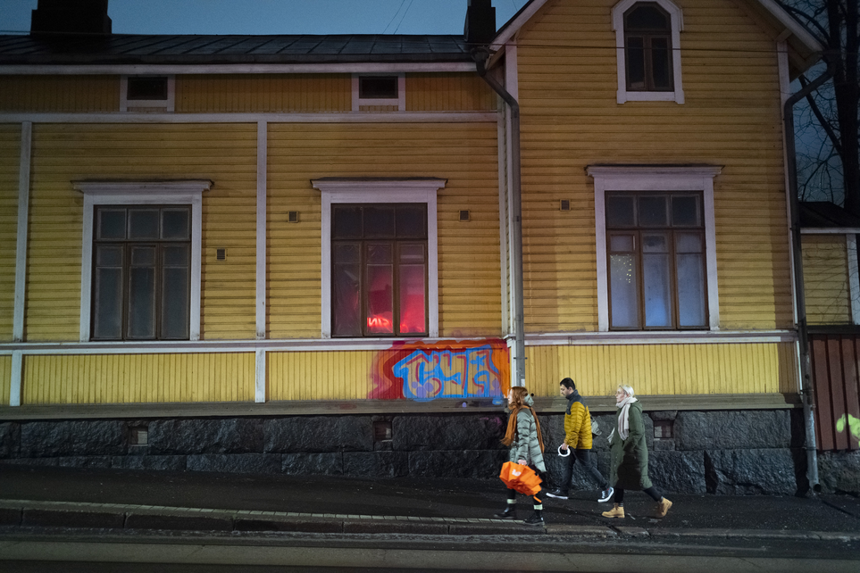 Kun kävelin itsekseni kaupungilla pandemian sulkutilan vallitessa, silloin kaupungin keskus ihmisten kokoontumisen keskittymänä katosi kuitenkin hetkeksi, ja kaikki ne paikat, joissa keskustassa vierailijat olisivat voineet pysähtyä, oli suljettu. Tila vapautui hieman paikkojen ja niihin liittyvien toimintojen mielleyhtymistä, mutta huomasin, että pandemian irti kytkemä järjestys kummitteli askeleissani ja eri paikkoihin liittyvät tuntemukset ohjasivat edelleen askeleitani. Kaipuu yhteisen tilan kokemukseen johdatti minut tutustumaan yhdessä Kati Korosuon ja Timo Jokitalon kanssa kulkureiden merkkien käytäntöön. Pandemian aikaisessa järjestyksessä etsimme merkeistä ratkaisua poikkeustilan ongelmiin, mutta noilla merkeillä on myös toisenlainen merkitys marginaalisessa asemassa eläneiden kulkureiden keskuudessa.