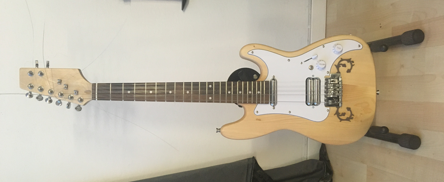The guitar needed special pickups since it doesn't have the same string setup as a modern guitar (six strings).