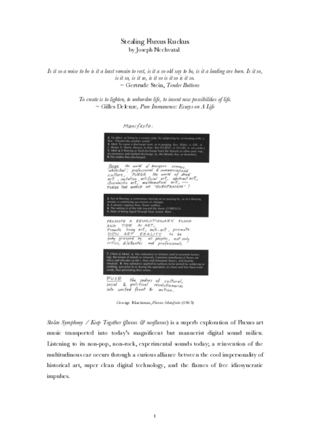 Today's counterculture in the young generation is the imitation of Fluxus from the original, so that is not the Fluxus art movement, is just a counterculture.