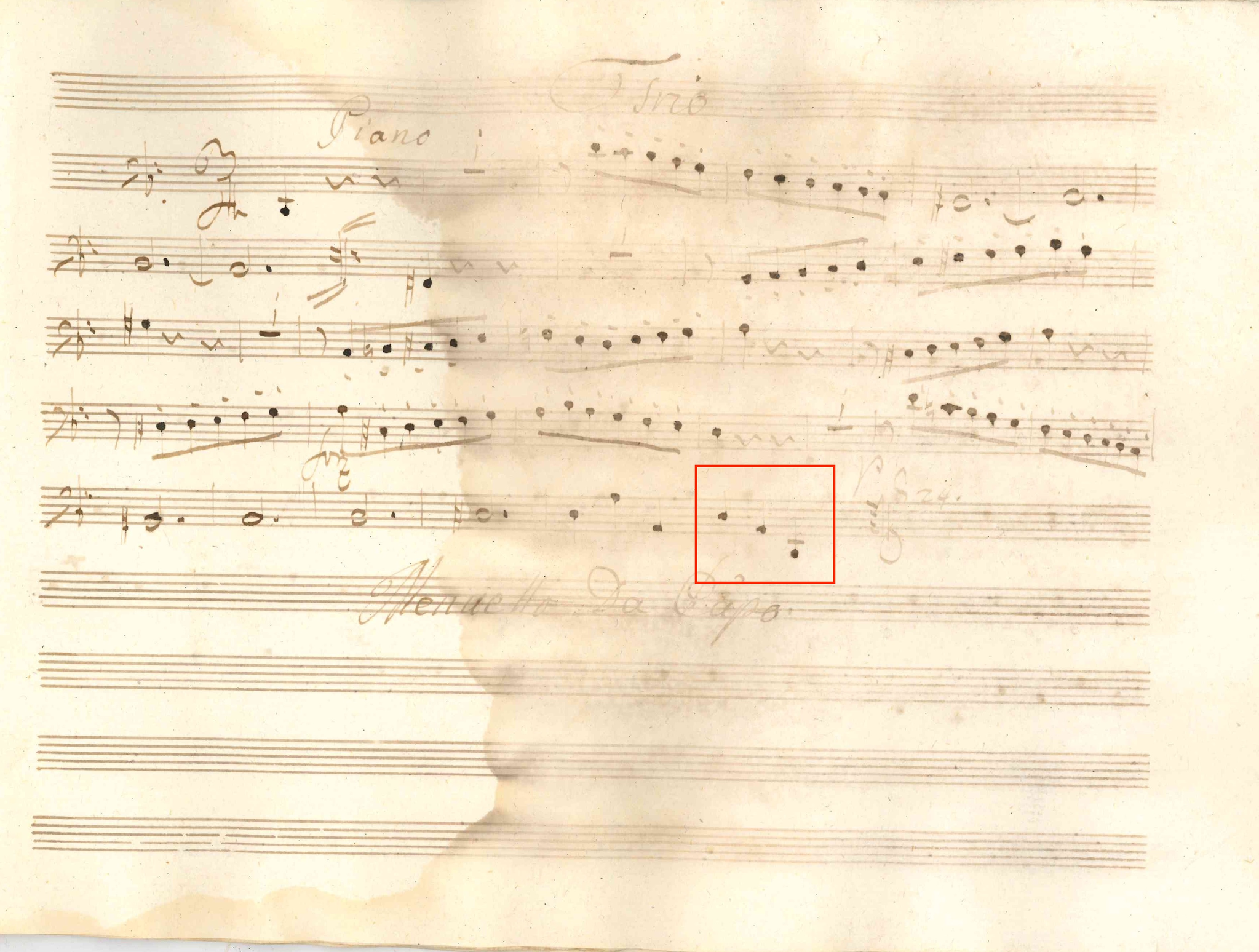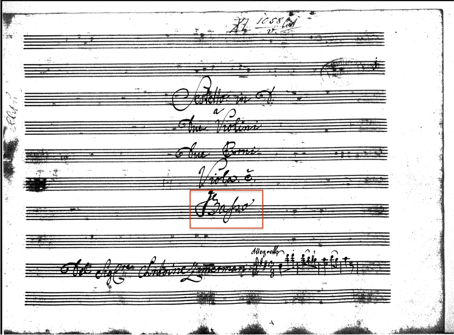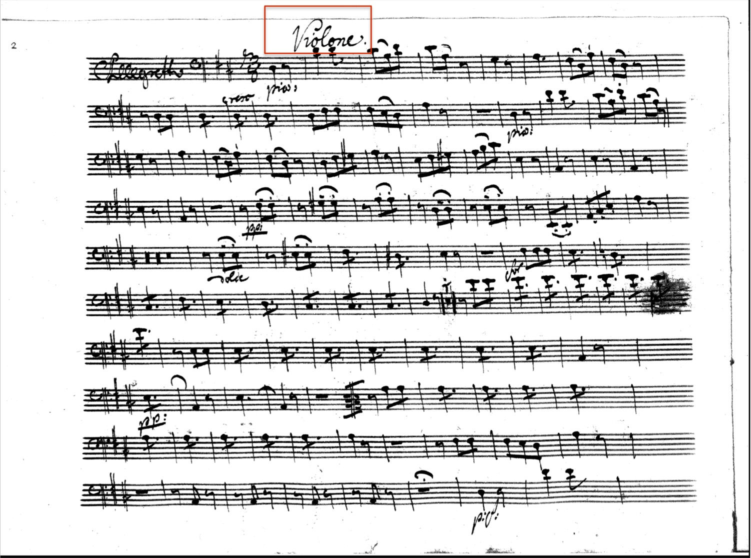 The study of historical manuscripts played an important role in determining whether the double bass could have been the intended bass instrument in the Divertimento Sextet. This involved the examination of title pages and bass parts of the extant manuscripts. Should the term violone or contrabasso appear on a manuscript title page and/or bass part, this could indicate that the double bass was intended instrument. In a majority of divertimento manuscripts, though, the term ‘basso’ is used to refer to the bass line, which gives no indication of any specific instrument. Therefore, when this term is used, the range and lowest notes of the bass part must be examined to determine if the double bass was likely to be part of the ensemble. Bearing in mind that the double bass in 18th century Austria had a lowest note of either F1 or E1, should the range of the bass part in the manuscript fall below this, it may indicate that the double bass was not used. However, it is important to consider that there are exceptions to this rule, which underlines the importance of examining manuscripts to understand the intended instrumentation.