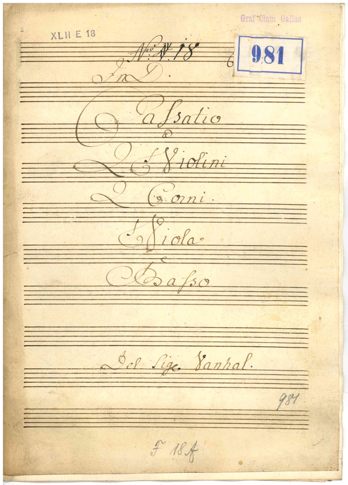 Figure 41 Title page and Basso part, Cassatio in D, G.B. Vanhal