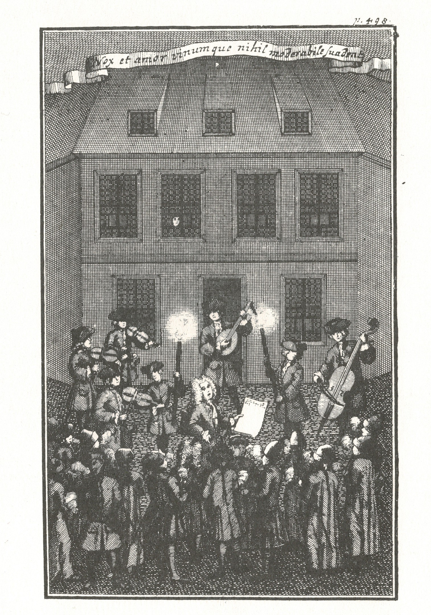 As entertainment music, the divertimento can be classified as a subcategory of serenade music. Serenades were known since the Renaissance as a lover’s song to his beloved, which was played under her window on a starry evening. In the 17th century the aristocracy and upper classes adapted the honorific function and the outdoor setting of the lovers song to celebrate special occasions such as name days, birthdays, weddings and promotions.8 Other occasions for outdoor music were “garden parties, street serenades, marches, field music, carnivals, circus, tower music, farewell music and other entertainments; those for indoor music were court dinners, assemblies, convocations, coronations and inauguration music, as well as music for cafes, and opera, ballet, and pantomime. Any special day such as these would present an occasion for indoor or outdoor music depending on the season.”9
