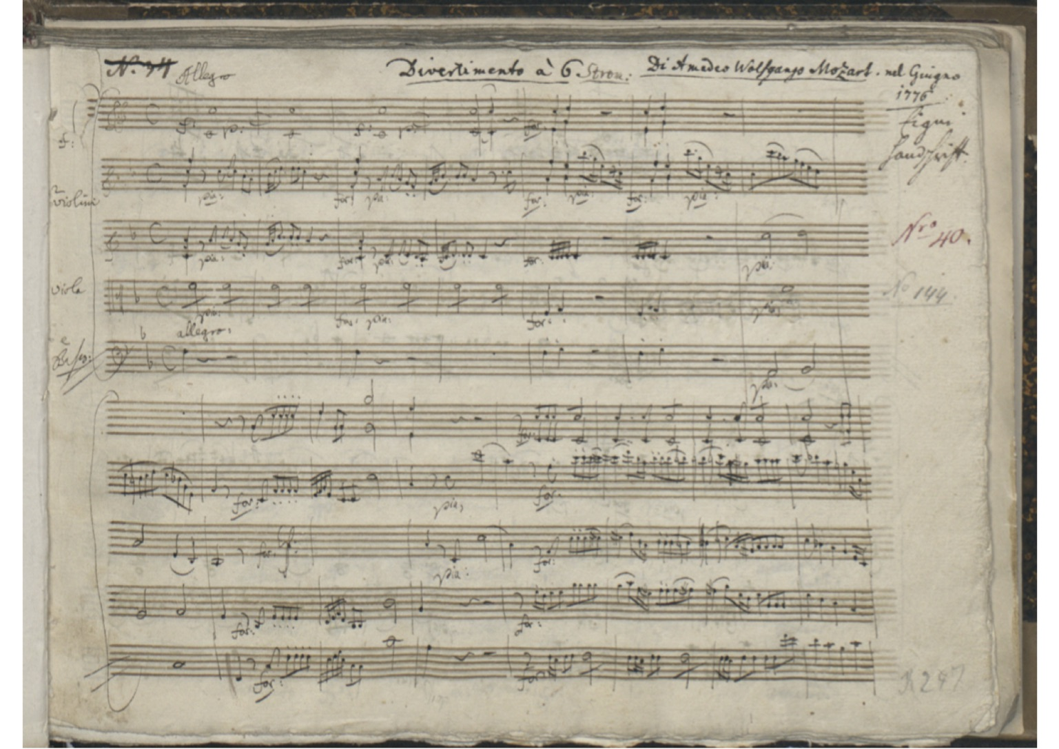 Fig. 24 Title page Mozart Divertimento KV 247, http://vmirror.imslp.org/files/imglnks/usimg/3/39/IMSLP559346-PMLP40444-Mozart_-_Divertimento_K247_-autograph-.pdf (accessed December 12, 2022)