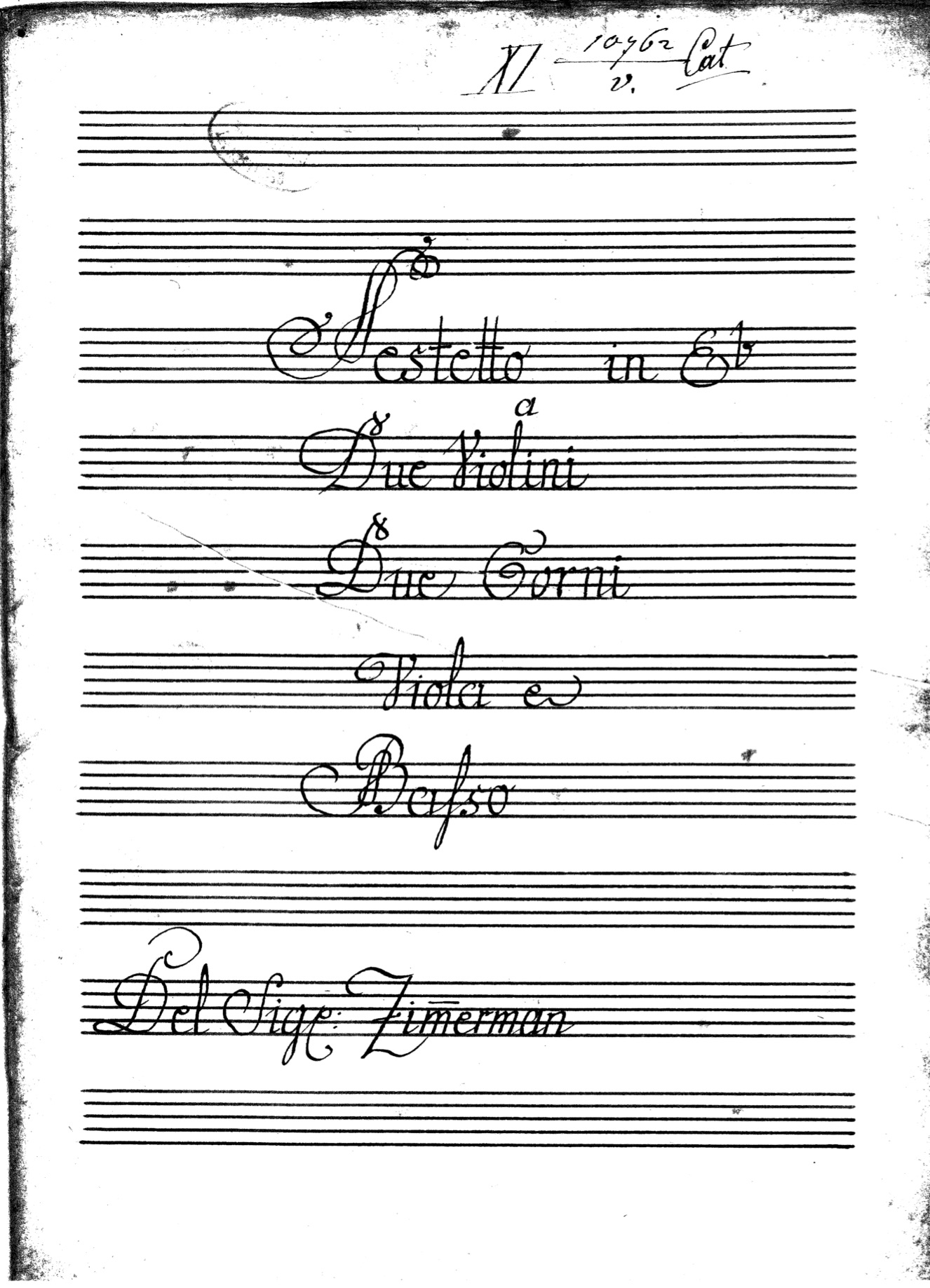 The following is an inventory of Anton Zimmermann's Sestetto and Divertimento compositions with the instrumentation of the Divertimento Sextet found in the libraries of the Vienna Musikverein and the Seitenstetten Abbey. The inventory includes an examination of the nomenclature used on the title pages and playing parts of these compositions. In addition, the bass parts are analyzed, focusing on the frequency of instances in which the notes extend below the pitch F1.