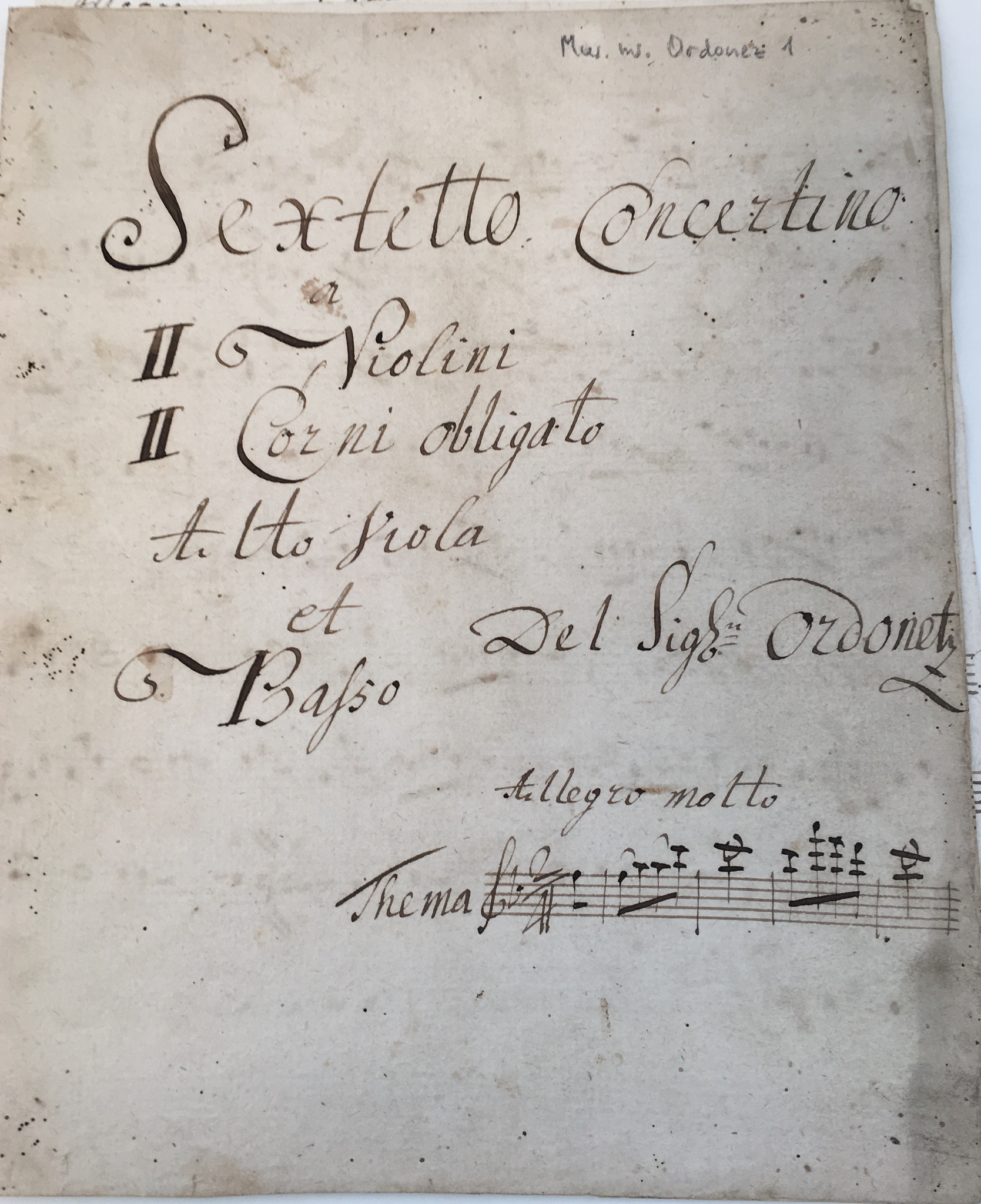 Carlos d'Ordoñez (1734-1786) was a minor composer living in the era of Mozart and Haydn. While his full-time profession was as an administrator at the Lower Austrian Regional Court, he also played the violin in the Kaiserliche Kammermusik and the Tonkünstler-Societät. He composed several symphonies, string quartets, and divertimentos. The example provided here is of a piece that shares the same instrumentation as the Divertimento Sextet. During my research, I found manuscripts of the piece in three libraries under different titles: ‘Sextetto Concertino’, ‘Concertino’, and ‘Cassatio’ (Figure 43). Notably, all three versions had the term ‘Basso’ featured on their title pages and bass parts. The bass part of the piece does not extend lower than F1, which is also the lowest note playable on a 5-string Viennese bass. Given the fact that F1 is the lowest note, this does not necessarily mean that the piece was specifically composed for this instrument. Other factors, such as the key of the piece, can also affect the range of the bass part.