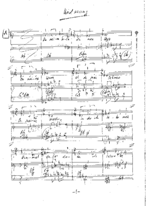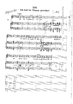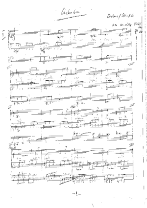 In this arrangement the piano accompaniment of the Kunstlied was transposed and transferred into the arrangement. It it present through out the A-part before we let go in the up-tempo B - part that leads into the instrumental solo. It re-appears again in the end and closes with the transposed "original" outro of the Kunstlied.