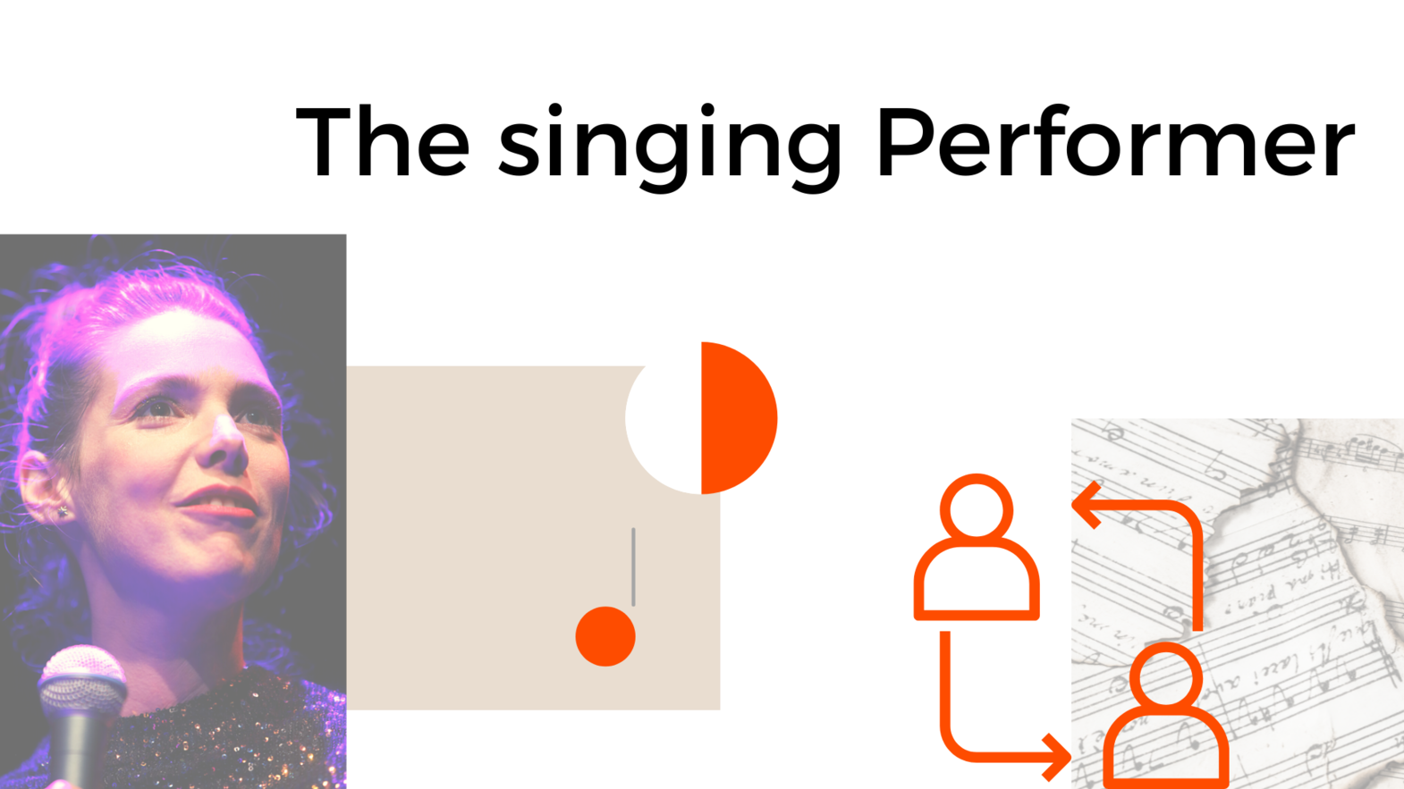 This solo play is autobiographical. It integrates inner monologues, dialogues and music and is about the tension of being myself and performing myself on stage when singing and not singing, on and off stage.