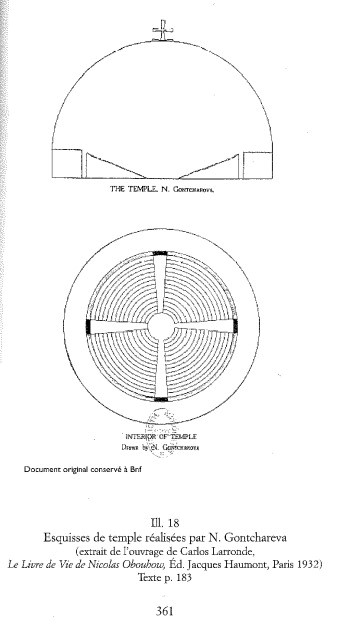 One more interesting aspect of the plan for the performance of Le Livre de Vie is the idea of the architectural setting. From descriptions of the time, it is known that there was a vision (although never executed) for the ideal architectural setting of the performance. He commissioned the painter Natalia Goncharova for the design, the esquisse of which is located in the Bibliothèque de France, and which can be described as circular temple in the shape of a dome. There was also an idea for how to distribute the participants within said space: