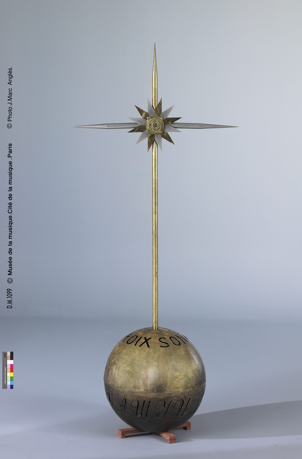 One of the most predominant visual symbols in Obukhov’s aesthetic is the cross. Something that was present already in an early stage, in his notation system, appeared in performances of the early 1930’s in the form of the Croix Sonore, the Sounding Cross, an electronic instrument he developed together with Michel Billaudot and Pierre Dauvillier, which was very similar to the theremin. For Obukhov, the shape of the cross was meant to symbolize a perfect balance.5 This instrument was meant to fulfill an integral part in Le Livre de Vie and did enjoy a spotlight in several performances. If on one hand the Croix Sonore brought a new source of sound, it also had great visual impact on the other, reenforcing the importance of the visual aspect of Obukhov’s musical performances.