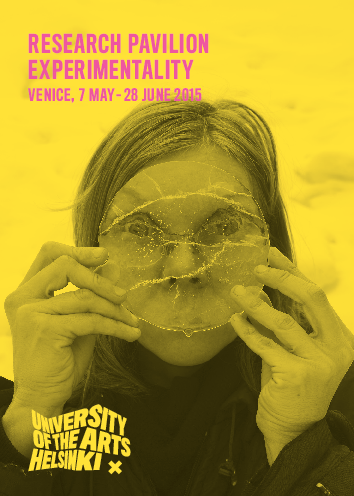 The University of the Arts Helsinki organised a Research Pavilion at the 56th Venice Biennale. This first pavilion in the history of the biennale to be dedicated to research consists of an international contemporary art exhibition and a platform for events, both featuring artistic research. The theme of the Research Pavilion was experimentality. Both the exhibition and the research events explored the following questions: How does experimentality manifest itself in contemporary art? Did the discourse on artistic research and its methodologies redefine our ideas regarding experiments and experimentality? Does current research generate new types of methodologies (such as affective or multisensory approaches) reassessing the nature of experimentation? In addition questions pop up such as: Does the concept of laboratory retain its sense in the context of artistic research? Could artistic research laboratories be seen as strategic, transdisciplinary platforms that enable research to be reimagined in new ways, i.e. by creating aesthetic preconditions for experimentation allowing topical problems to be addressed in some hybrid form? Does an artistic research laboratory facilitate new connections between science, aesthetics, and politics?