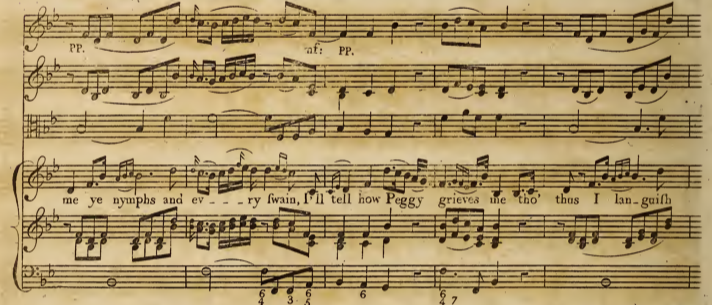 In several modern sources, Pietro Urbani is ranked among the greatest Italian musicians to have visited Scotland during the eighteenth century. This constellation of singers usually includes the likes of Domenico Corri, La Miniatrice,90 and Ferdinando Tenducci. Johnson also includes the violinist Nicolò Pasquali in his litany of influential Italians.91 Despite his influence, however, very little is known about Urbani’s early life. We know from his obituary that he was born in Milan, and that he studied there alongside “the celebrated Rotzini,” who Baxter identifies as the castrato and composer Venanzio Rauzzini.92 It is claimed that Rauzzini studied under the tutelage of a member of the Sistine Chapel choir, together with Domenico Corri.93 It is likely, therefore, that Urbani was familiar with this tradition of singing, and may have had a similar technique and approach.