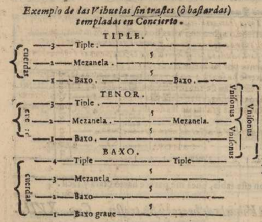Some claim that Pietro Cerone’s El melopeo y maestro, tactado de musica theorica y practica (1613)18 is basically a translation of Lanfranco’s work. The most important information that Cerone gives us in his Melopeo is the pitches that were missing in Lanfranco’s Scintille. This information shows once more the existence of the Bb’ tuning for the bass violins, or as he calls it, baxo.