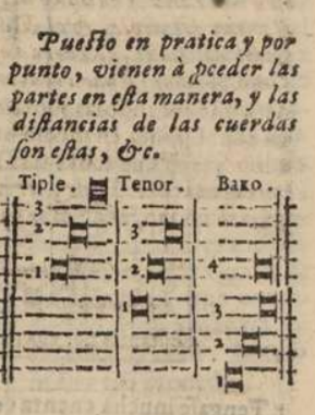 Although the text of Lodovico Zacconi’s Prattica di musica16 is hard to decifer, Boyden´s translation of the text gives us a clear understanding of Zacconi´s tuning system. The bottom string of the basso is a Bb' as in the tuning systems of Lanfranco and Jambe de Fer. He also puts an interval of a fifth between the strings.