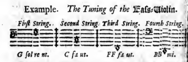 [...] the violin is tuned by fifths [...] and the Bass because it is tuned to the lowest note that can be played by the soprano will have the range from Bb'17