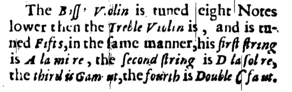 Nearly thirty years later (1683) he specifies the Bb’ tuning for the bass violin: Bb’ F c g.22