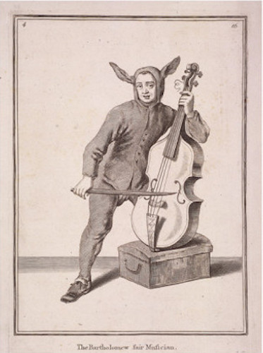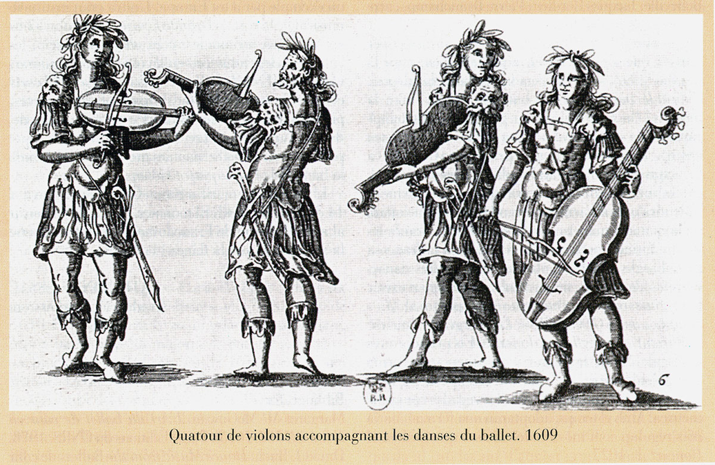 There exists the possibility that the musicians who played the basse de violon also played the viol, for this reason one might assume that they would have played initially with an underhand bow grip, as it was the technique that they were used to. This underhand grip, however, does not seem to be the one used by all the basses de violons players in France. Even though the depictions of the time show street musicians, clowns or actors in France holding the bow underhand,2 Georg Muffat described in his Florilegium Secundum of 1698, that the violins in Lully´s orchestra played also if needed both middle and lower voice (hence not a viol player).3 In contrast with what I previously said, that may suggest that the basses de violons players of the Vingt-quatre violons du Roi were more familiar with the technique of the violins than with the one of the gamba, and consequently, the overhand grip.