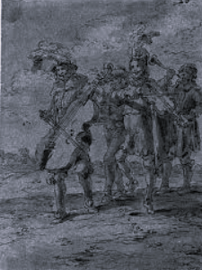 [The instruments] are held upon the arms, some with a scarf, cord, or something else. The bass, because of its heaviness, is very troublesome to carry; hence it is supported with a little hook in an iron ring, or something else, which is attached to the back of the said instrument quite suitably, […so] that it does not hamper him who plays upon on it.14