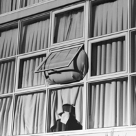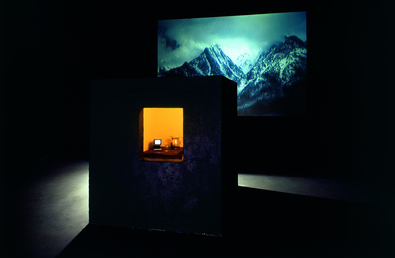 Use simultaneous of the model as sculpture and the background in projection, as reflection and representation of the contrast between the inside situation and the exterior.